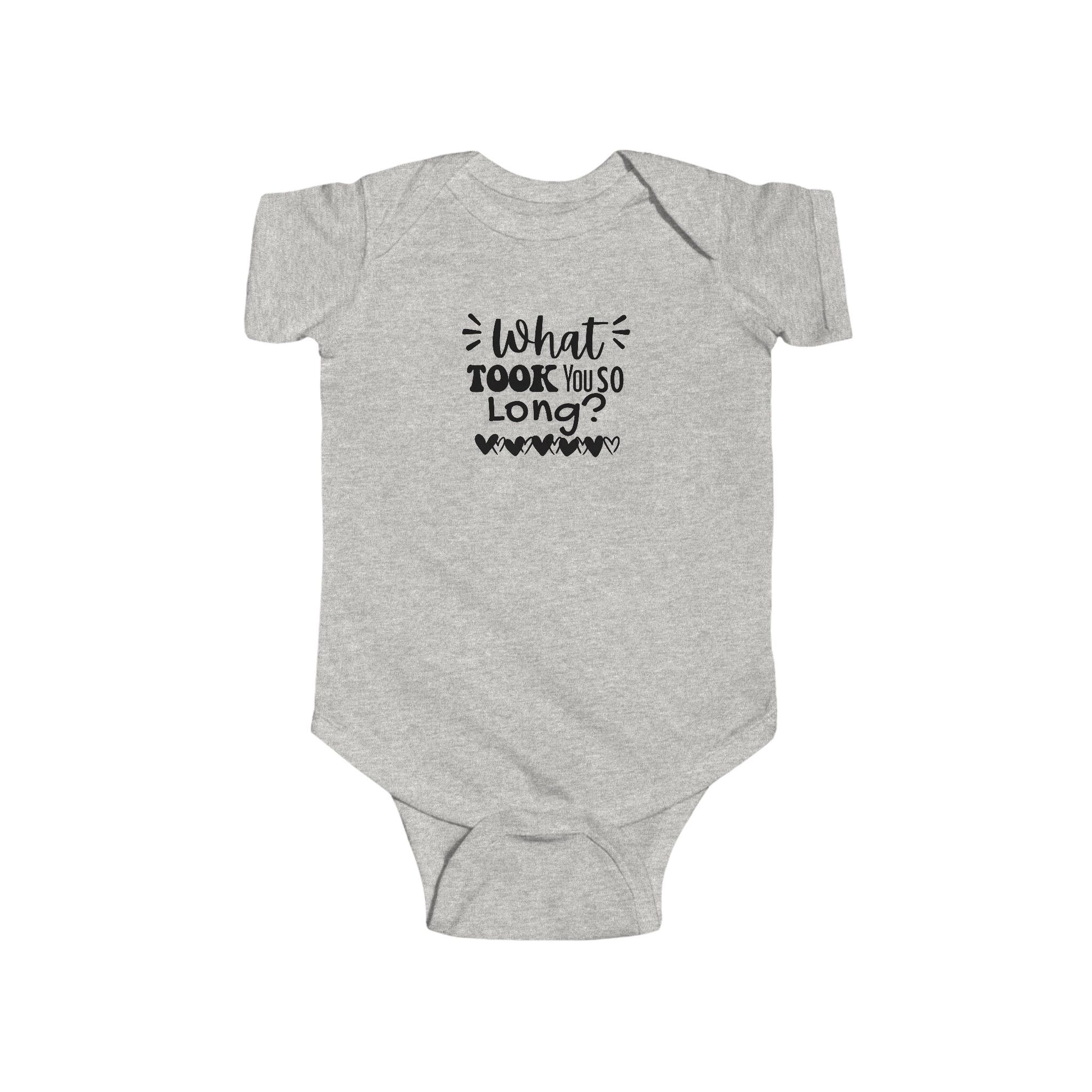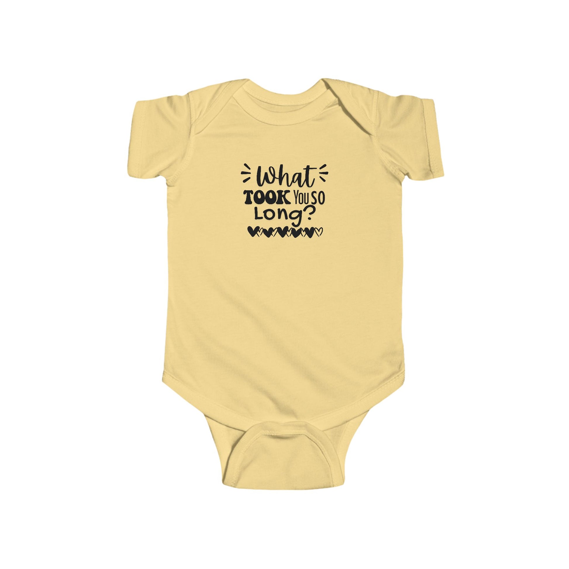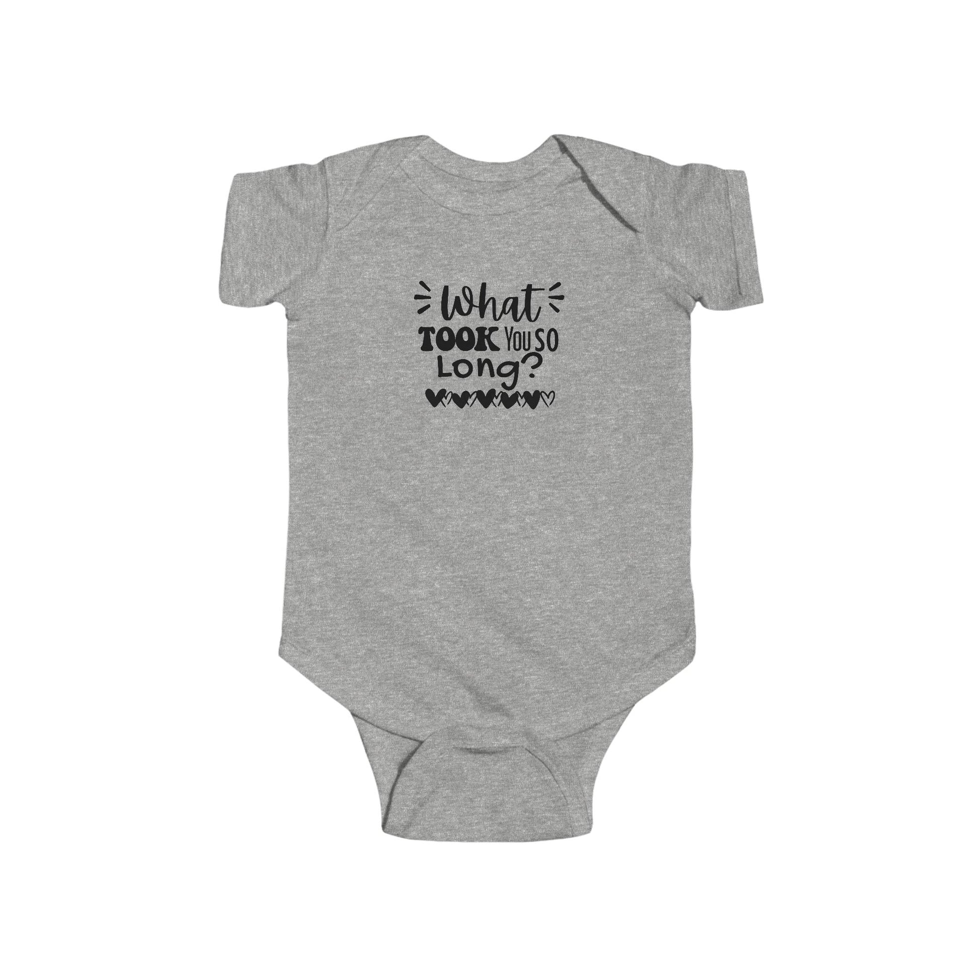 Introduce your little one to fun fashion with this adorable Infant Fine Jersey Bodysuit. Crafted from soft, high-quality fabric, it ensures comfort and style for your baby every day. The charming design gives off a playful vibe, making it perfect for everyday wear, family gatherings, or special occasions. This bodysuit is ideal for new parents, baby shower gifts, or anyone looking to add a touch of humor to their baby's wardrobe. Celebrate holidays such as Birthdays, New Year's, and family gatherings with a piece that brings smiles all around.