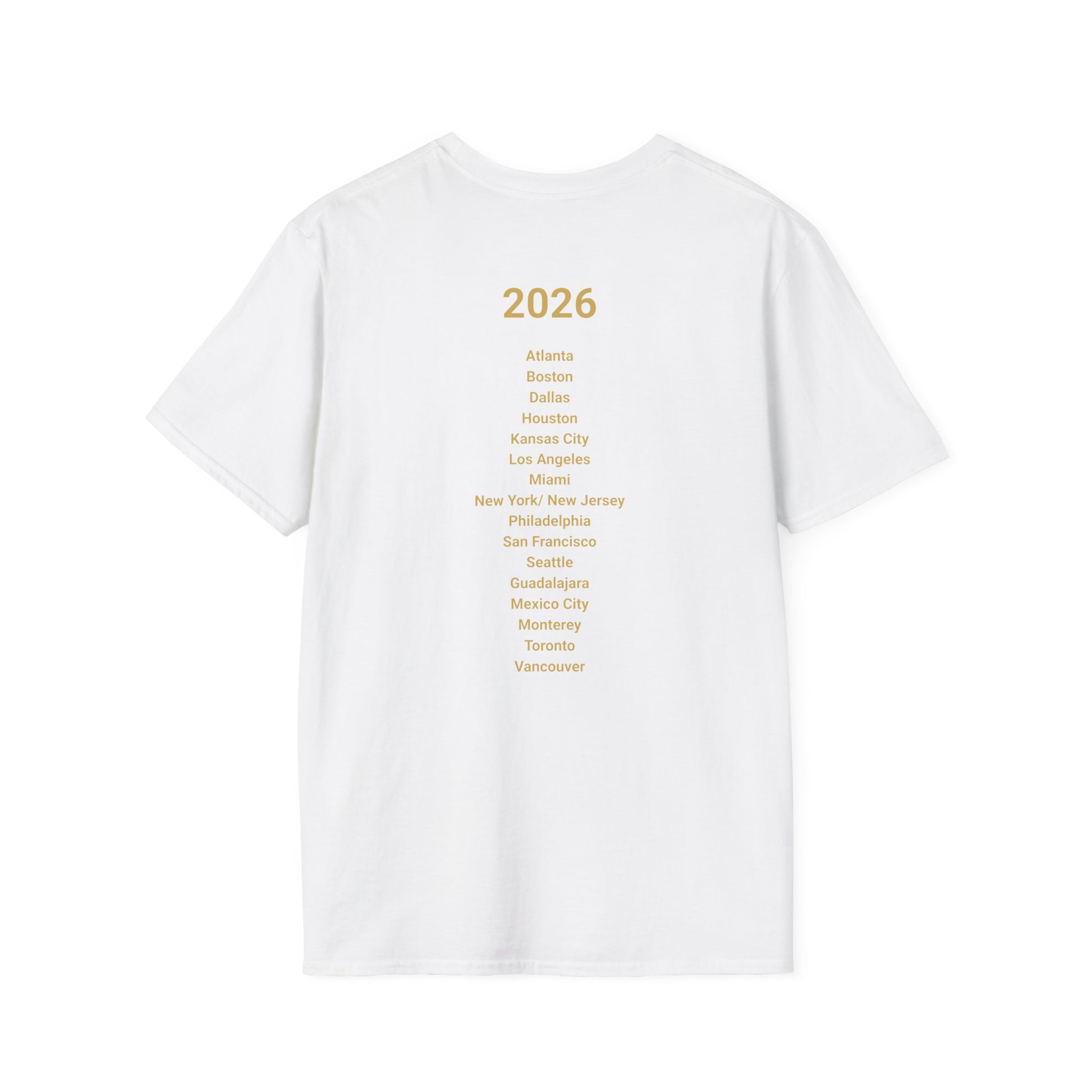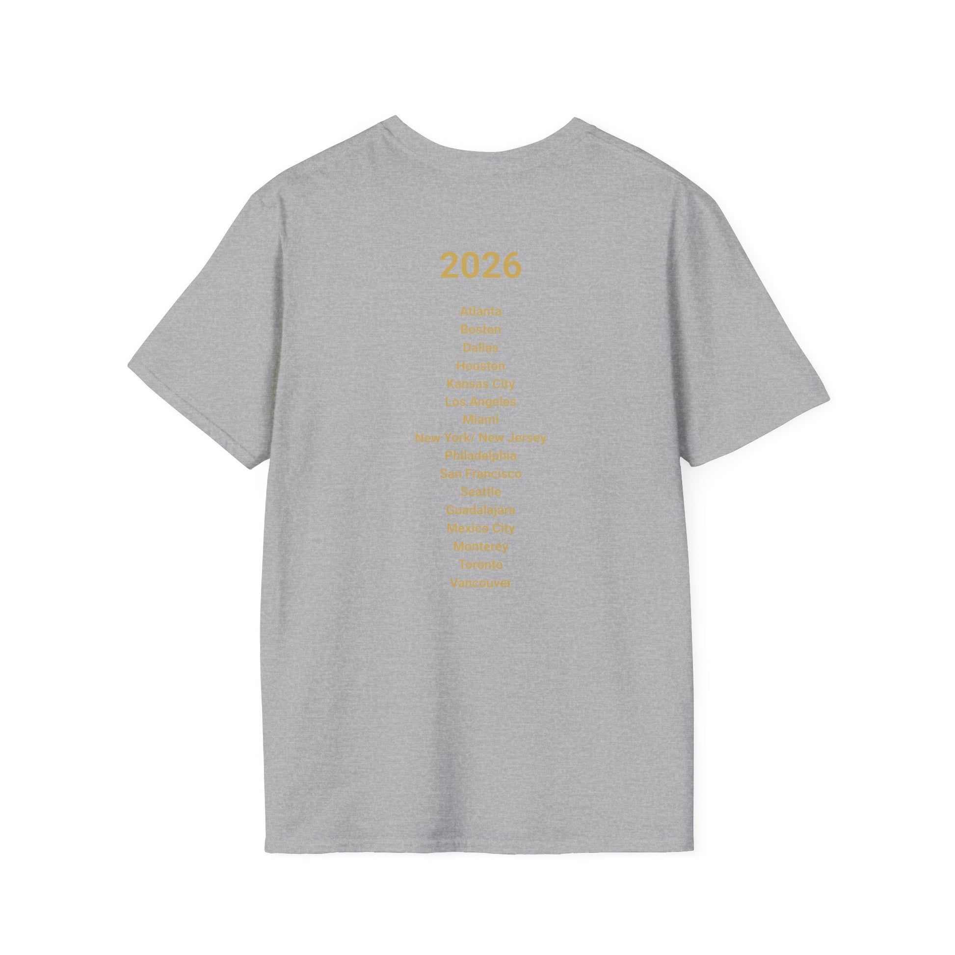 It isn’t just clothing- it’s your ticket to the World Cup 2026 buzz. Featuring a striking graphic of the World Cup trophy wrapped in gold flag colors of Canada, the USA, and Mexico, this design represents unity, culture, and pure soccer fire.