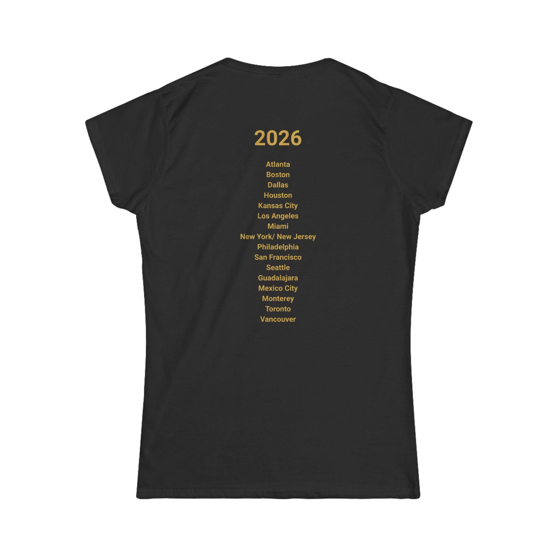 It isn’t just clothing- it’s your ticket to the World Cup 2026 buzz. Featuring a striking graphic of the World Cup trophy wrapped in gold flag colors of Canada, the USA, and Mexico, this design represents unity, culture, and pure soccer fire.